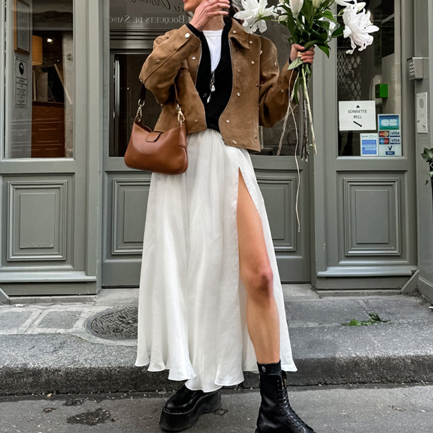 Women's Commuter Wide-hem Satin High-grade Summer Draped Skirt