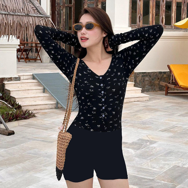 Women's Fashion Casual Floral Long-sleeved Jumpsuit