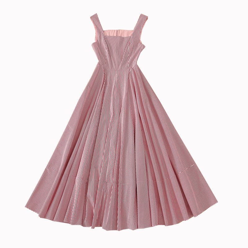 Women's Fashion Square Neck Slim Fit Casual Vacation Striped Big Swing Dress