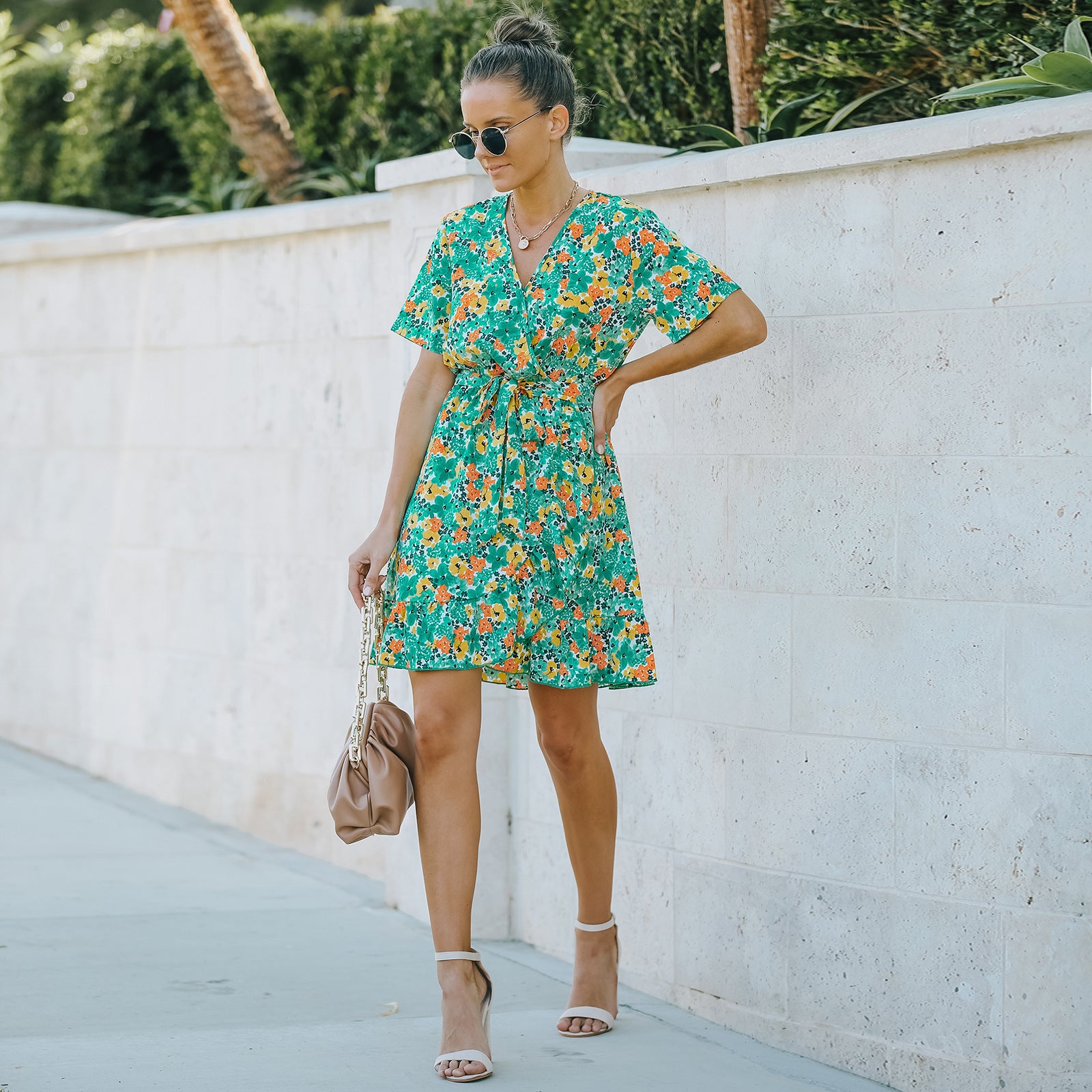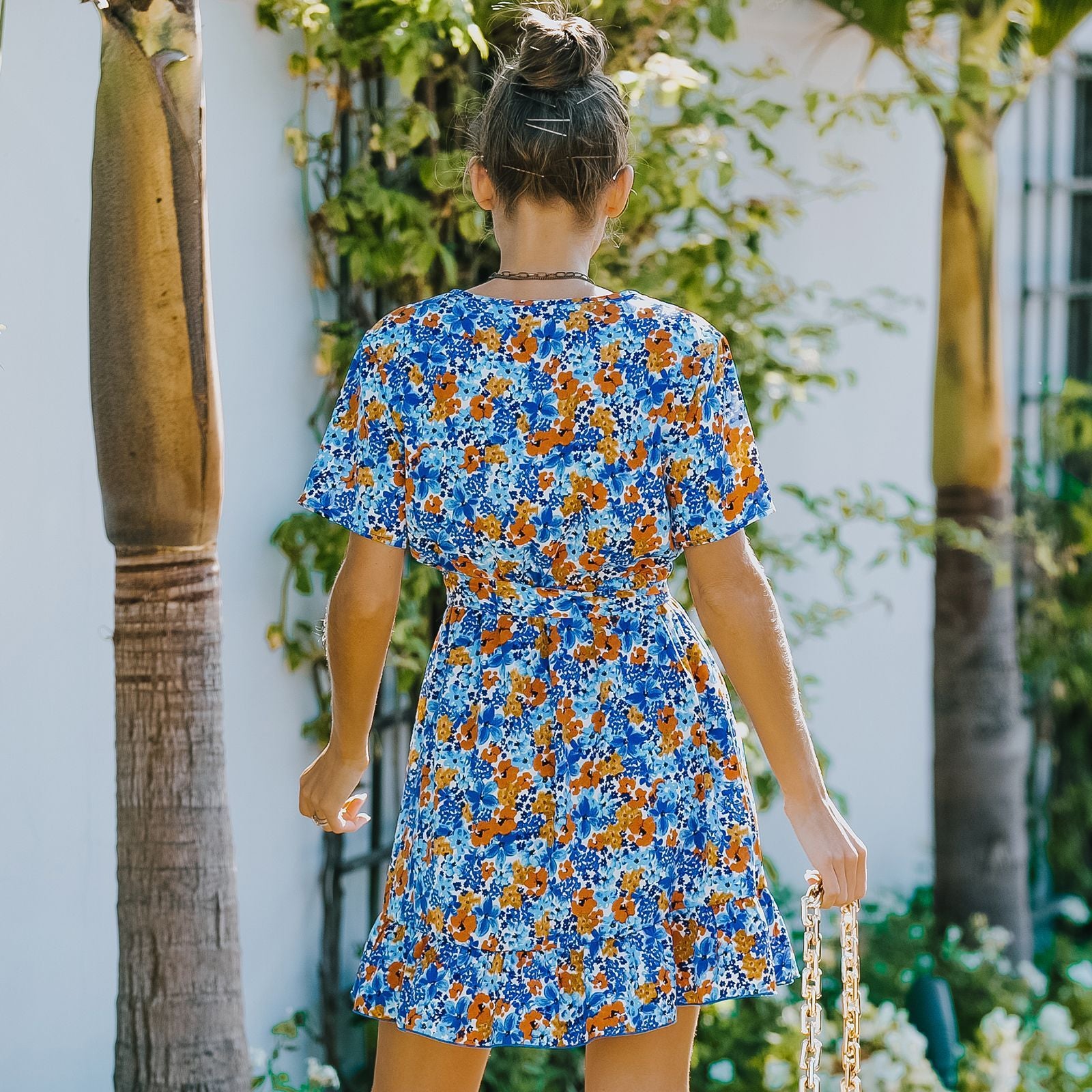 Women's Floral Short Sleeve Chiffon Dress