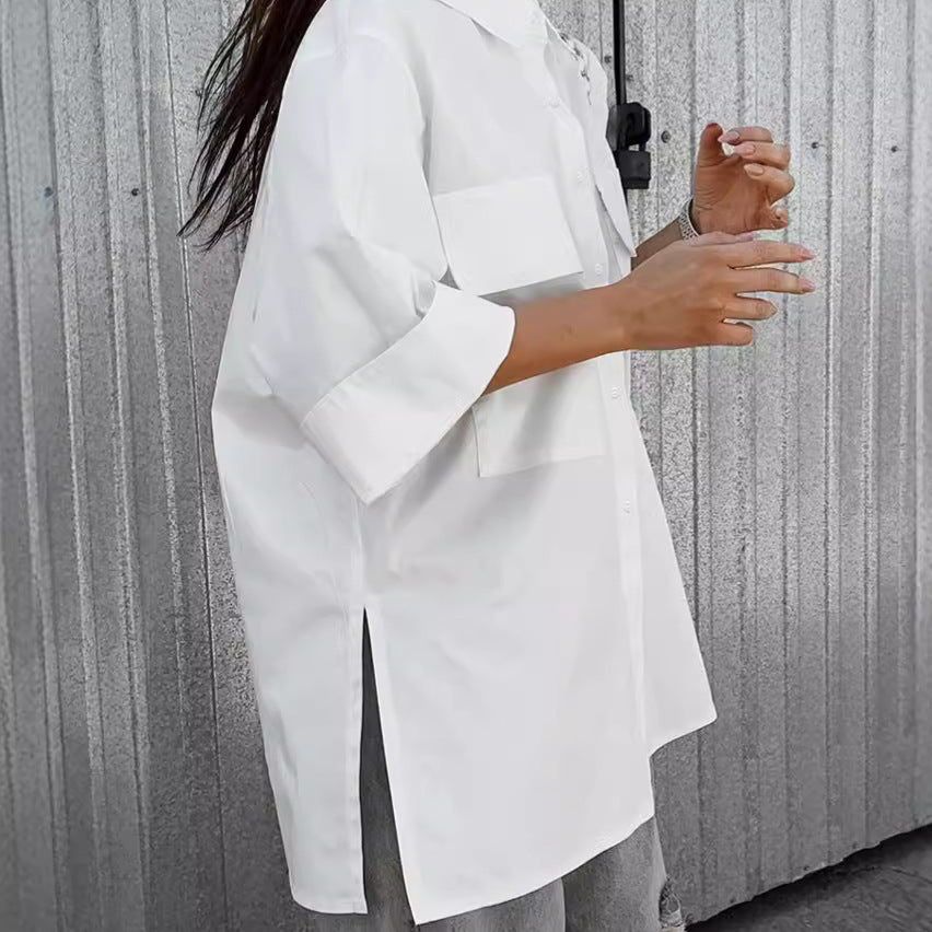 Women's Loose White Shirt Cool Silk Cotton Fashion