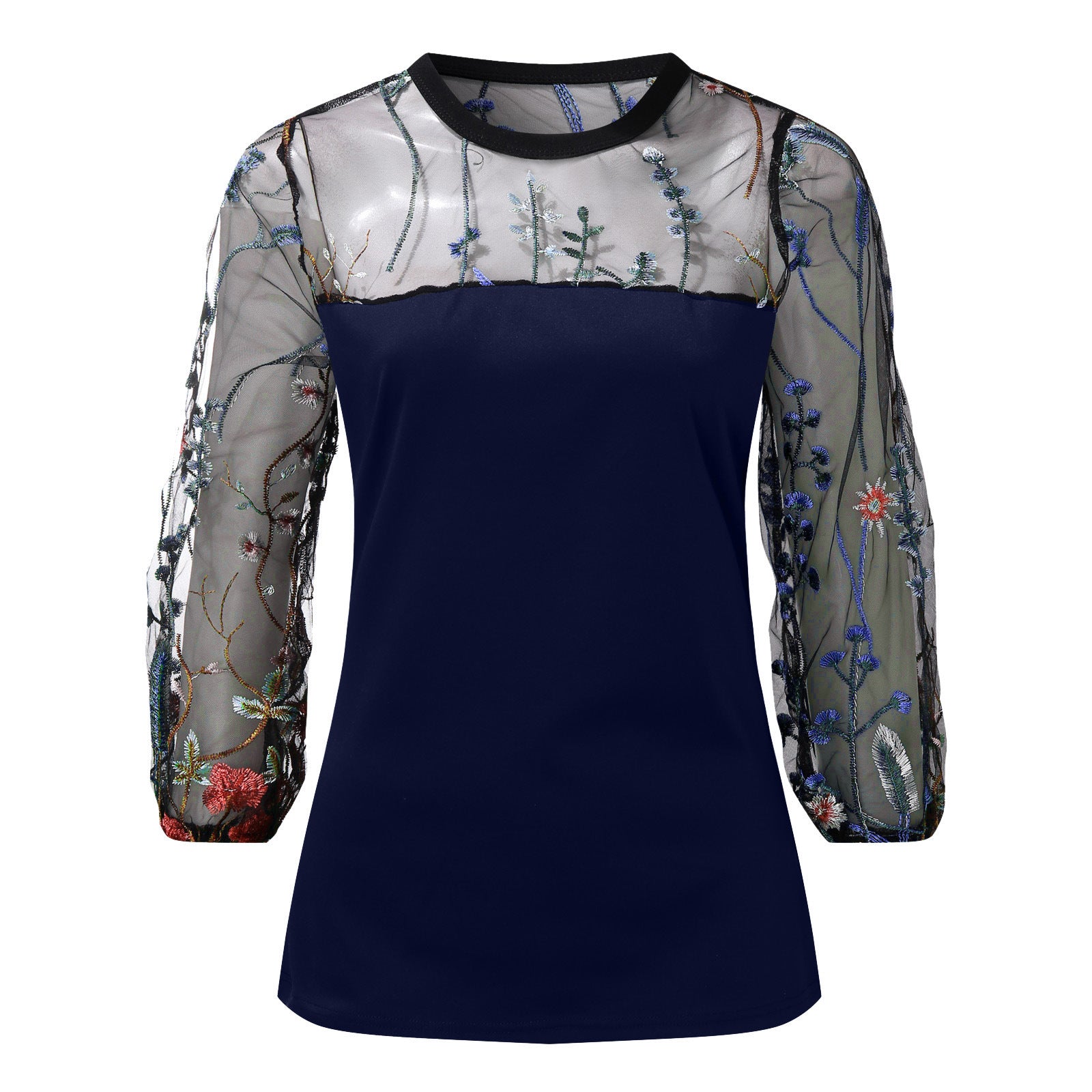 Women's Mesh Embroidered Long-sleeved T-shirt