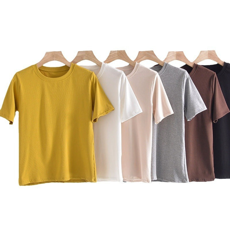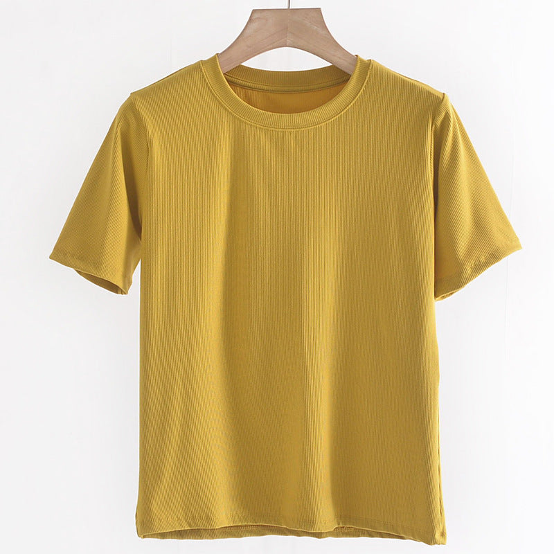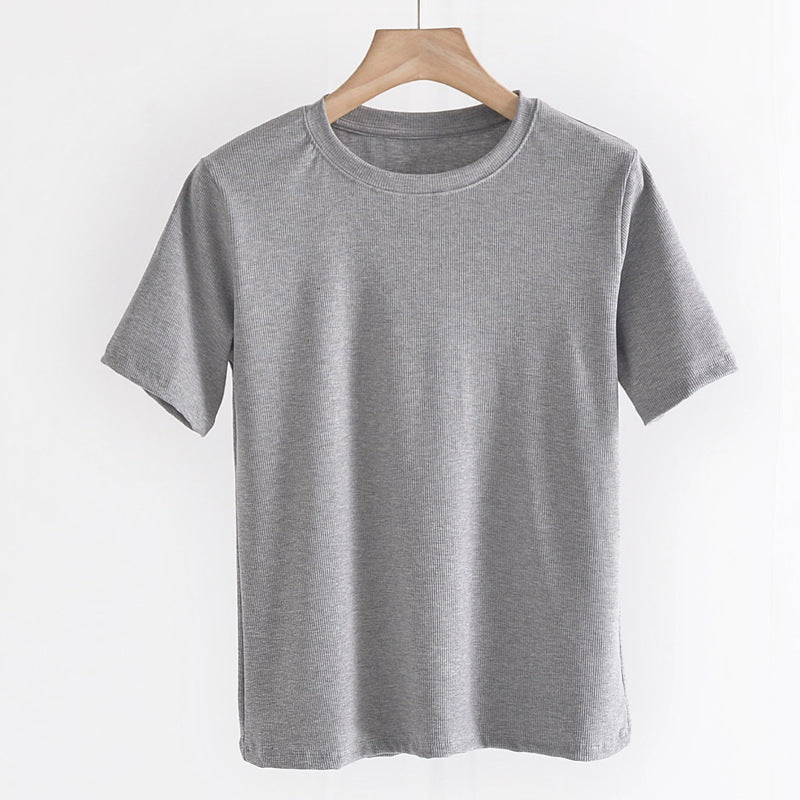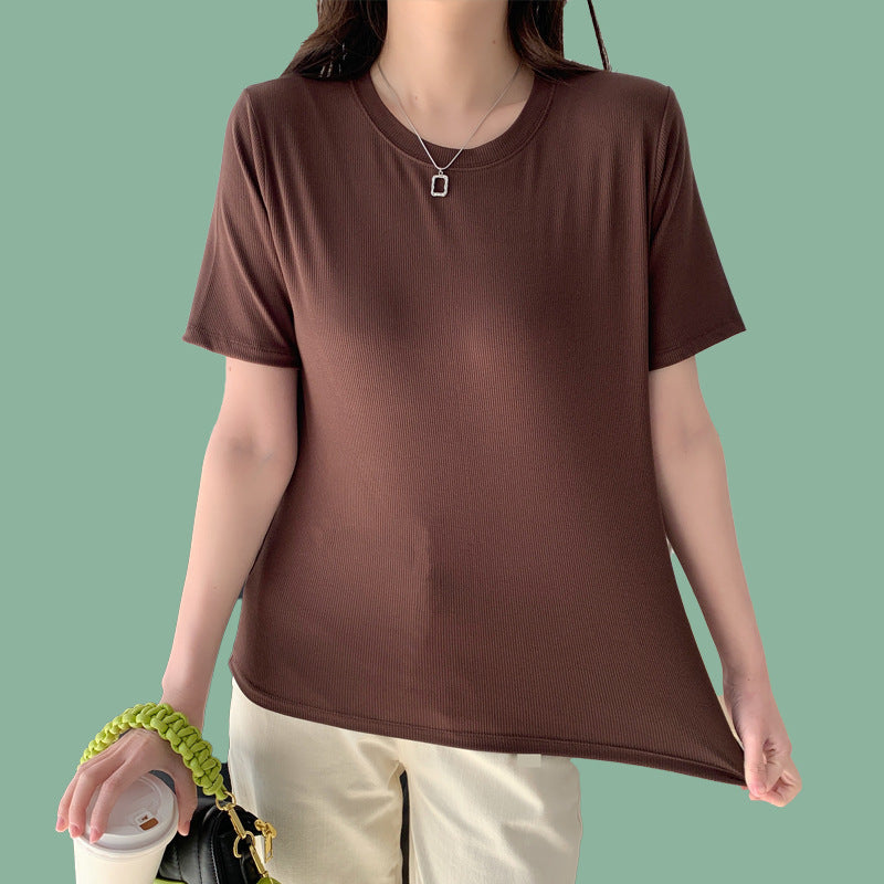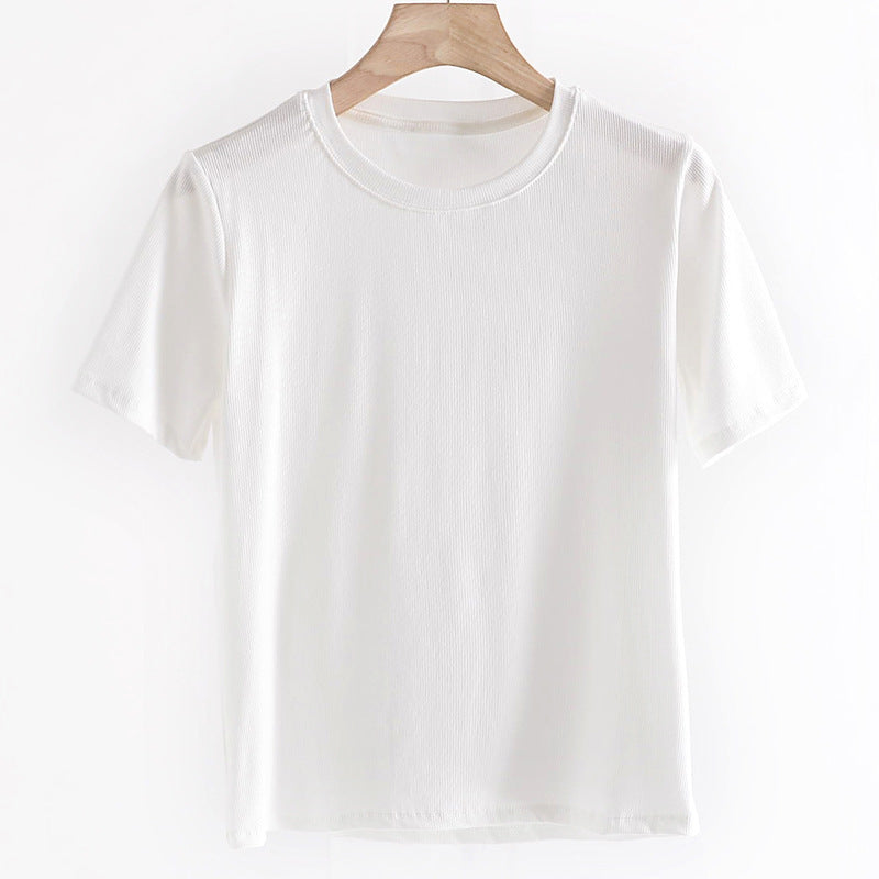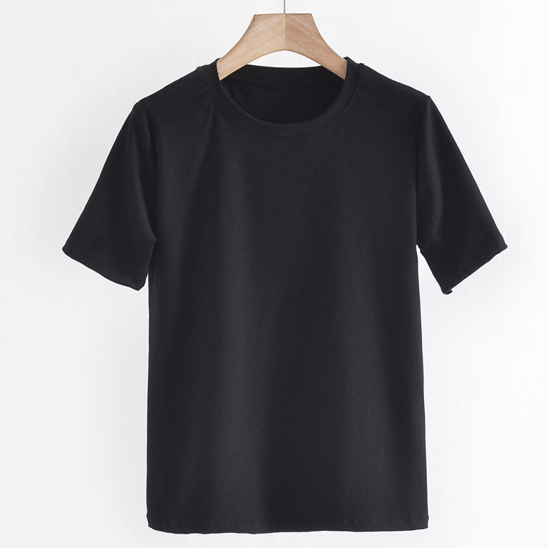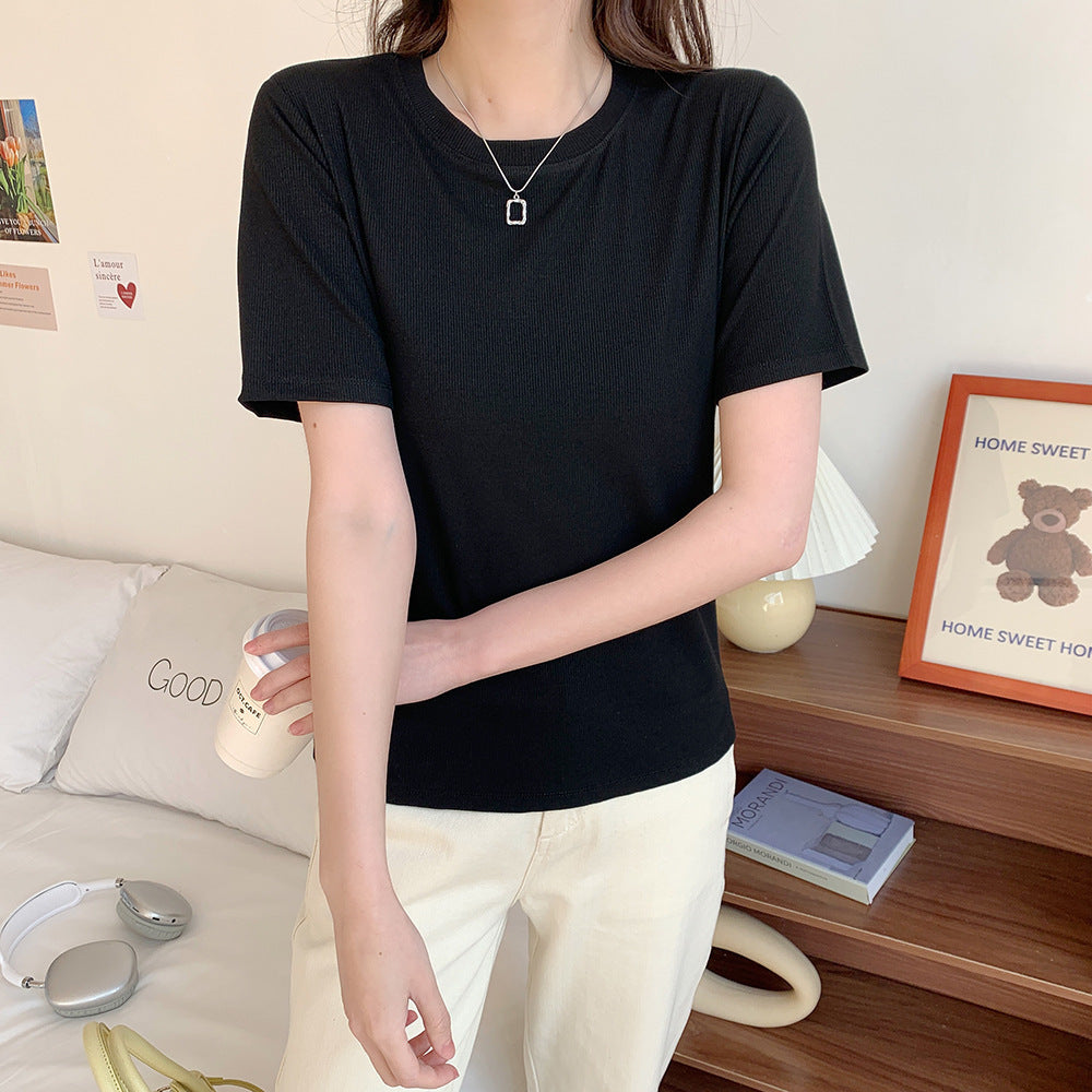 Women's Round Neck Bottoming Shirt Knitted Top T-shirt With Short Sleeves