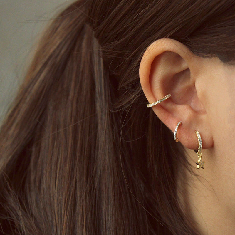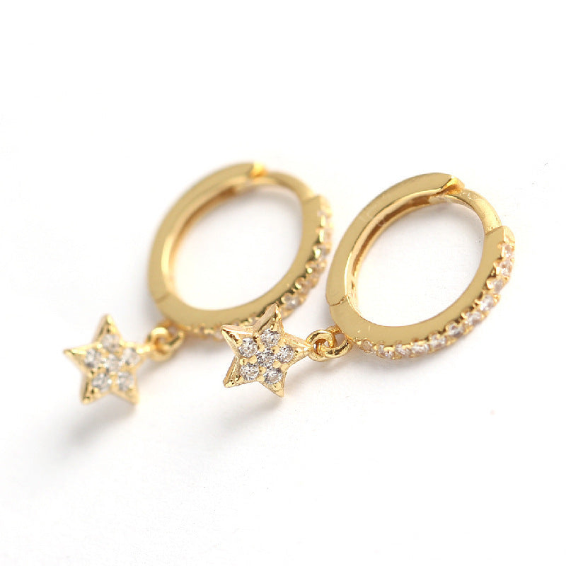 Women's Sterling Silver Needle Geometric Stars Diamond Personalized Earrings