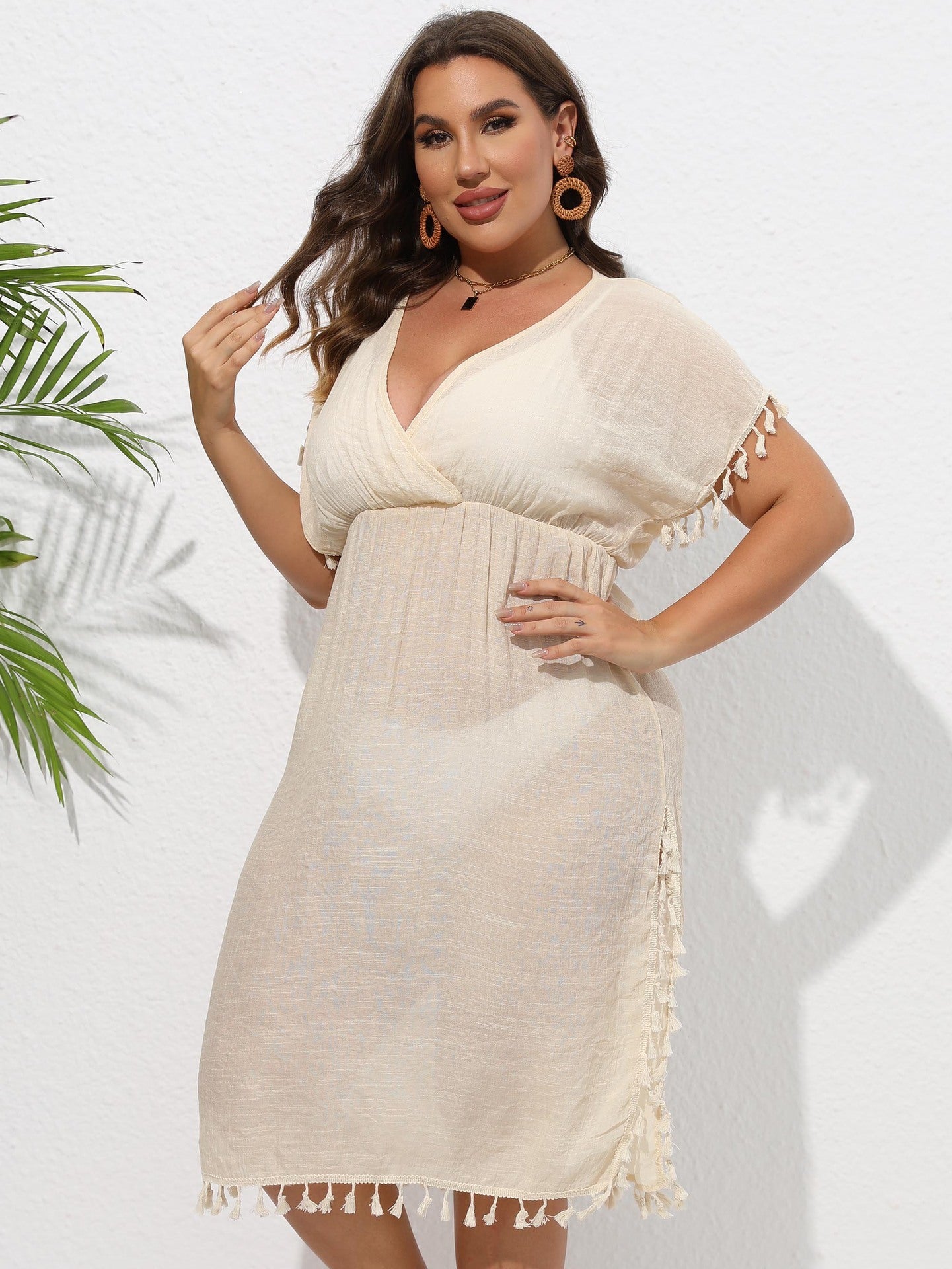 Women's Waist Slit Tassel Vacation Style Dress